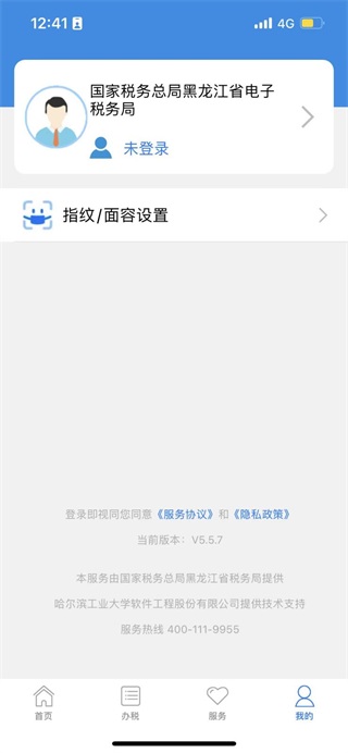 打开电子税务局APP,点击【我的】-【未登录后方箭头】,进入到登录界面。