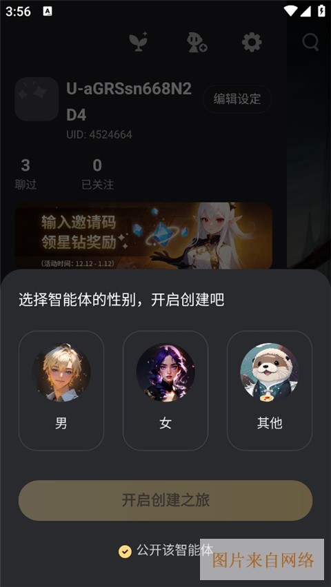 3、选择智能体的性别,开启创建吧。