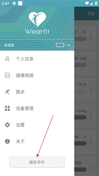 1、打开Wearfit APP,点击左上角三条横线的菜单图标。