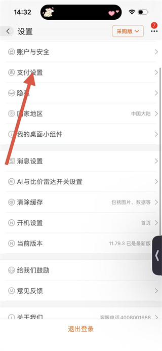 3、在设置界面,点击“支付设置”选项,进入支付设置页面。