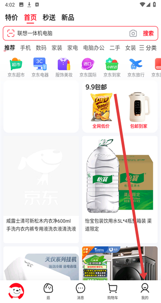 1、在进入到京东app首页中,可以点击下方我的按钮,进入我的主页。