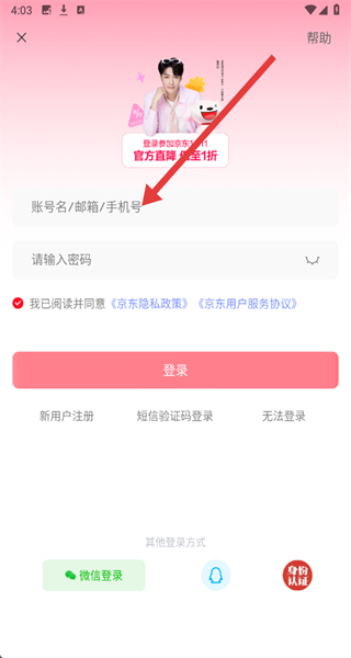 4、在切换到账号密码登录页面时,可以点击上方输入框依次填写账号和密码后,即可完成登录操作。
