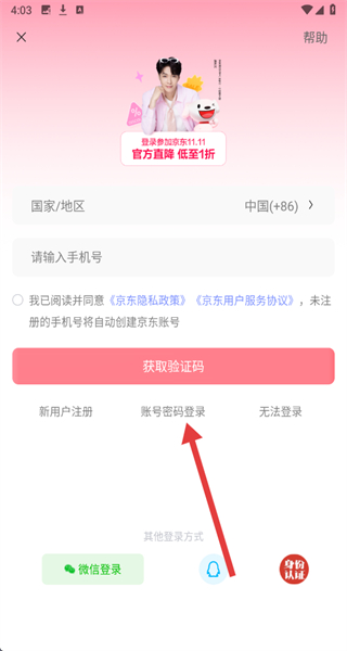 3、在进入到登录页面中,可以点击下方账号密码登录按钮,切换登录方式进行登录。