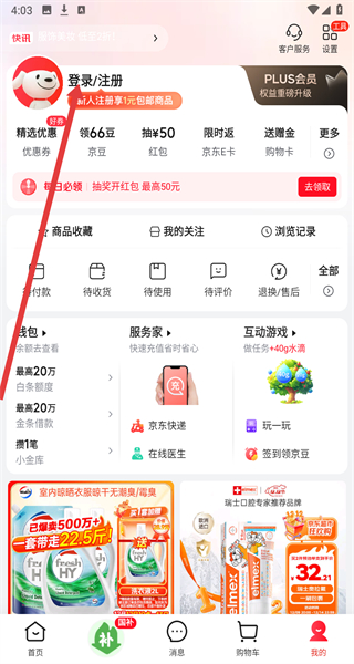 京东超市、京东到家、充值中心、电影娱乐、酒店机票等,应有尽有