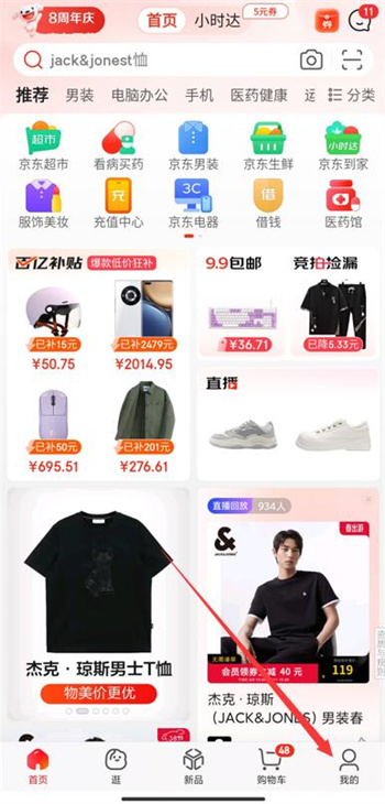 1、在京东APP首页点击顶部搜索栏,可以进行搜索商品。