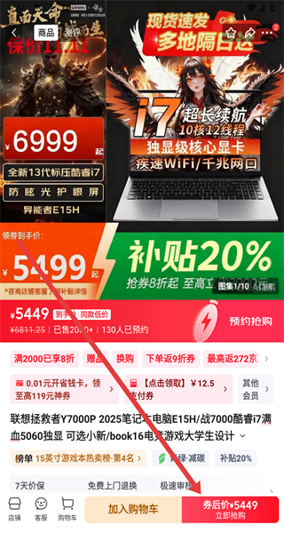 4、在商品详情页点击“券后价?5449立即抢购”,完成购买流程。