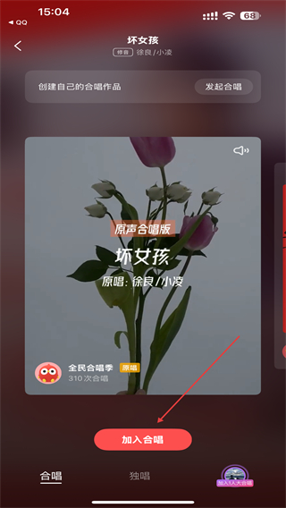 3、在合唱的页面内,点击下方加入合唱即可成功。