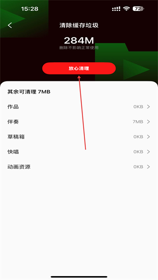 3、进入设置的界面内,点击下方清理缓存垃圾的按钮。