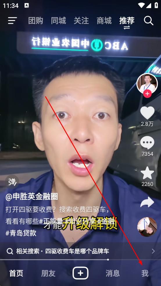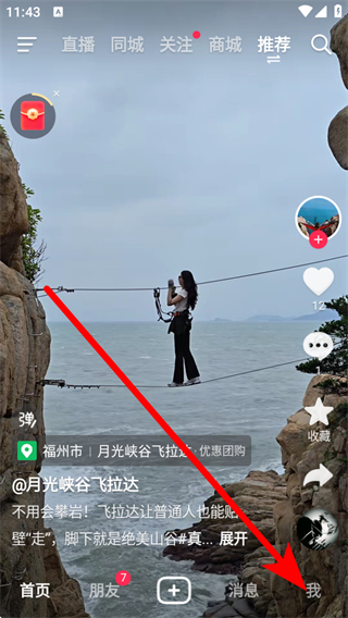 1、打开抖音APP,点击底部导航栏最右侧的我,进入个人页面。