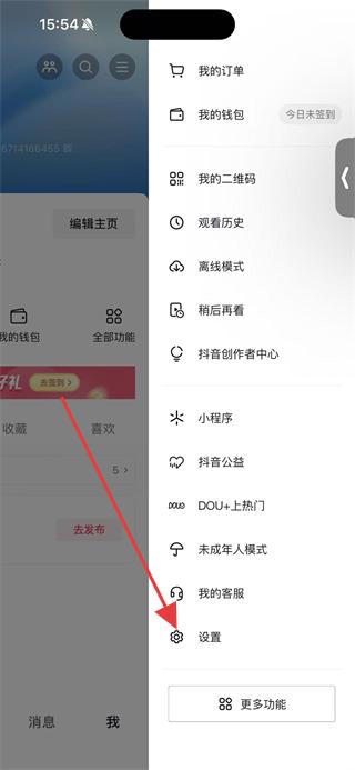 2、在个人页面中点击右上角三条横线图标,弹出功能菜单。