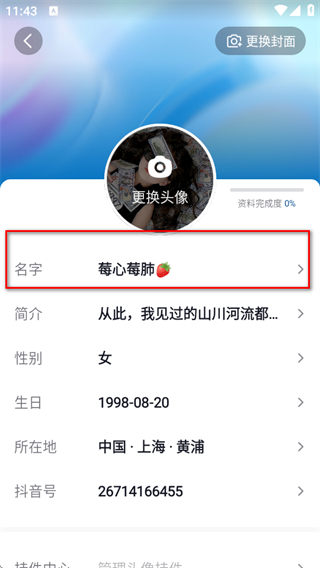 4、在修改名字页面,输入新的抖音名字后点击保存,即可完成抖音名字修改。